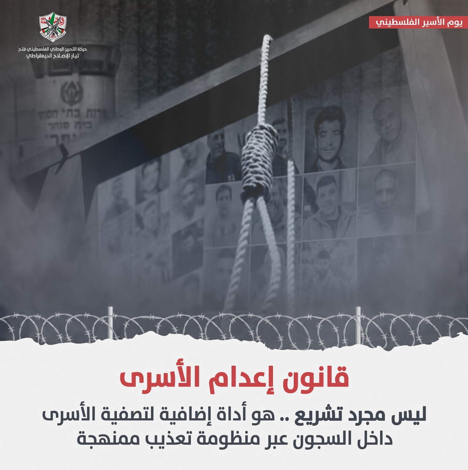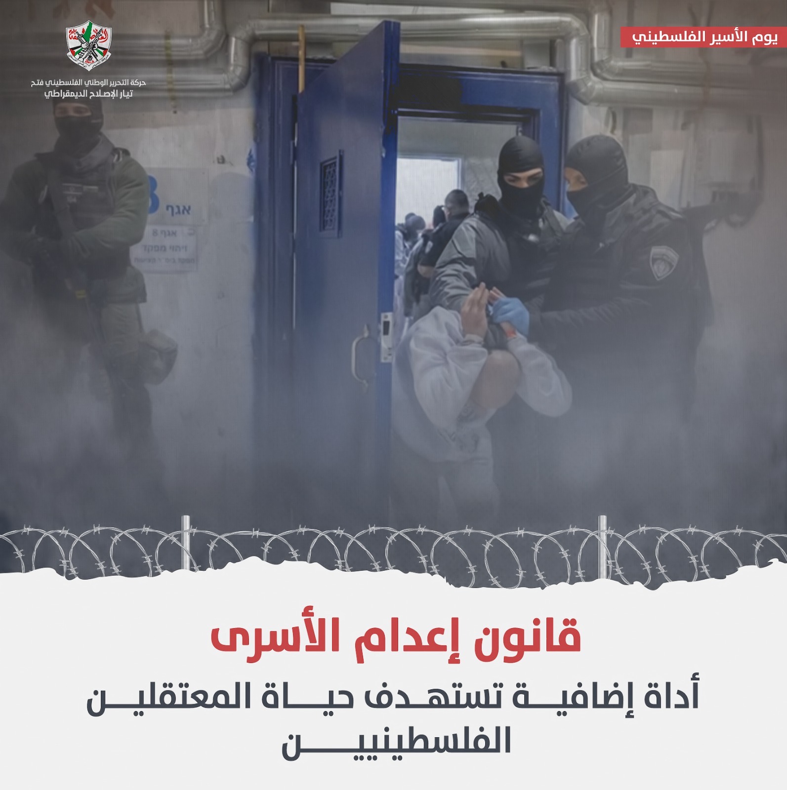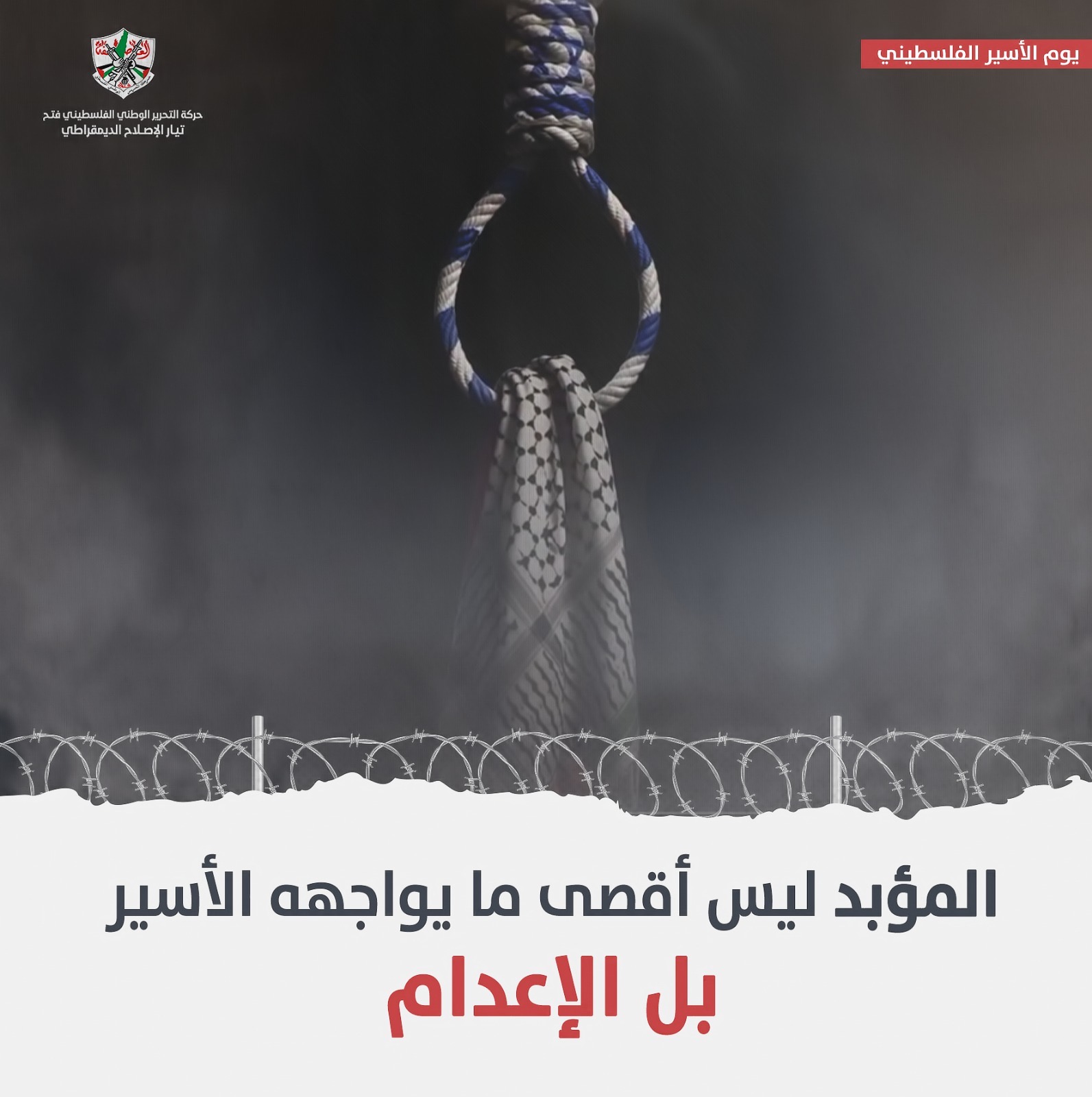 وأشار إلى أن آلاف الأسرى يقبعون في سجون ومراكز توقيف متعددة، بينهم نساء، ويواجهون أوضاعًا إنسانية صعبة نتيجة سياسات ممنهجة تشمل التعذيب والتجويع والإهمال الطبي، إلى جانب التحذير من تصاعد المخاطر المرتبطة بأي إجراءات أو قوانين قد تمس بحقهم في الحياة.