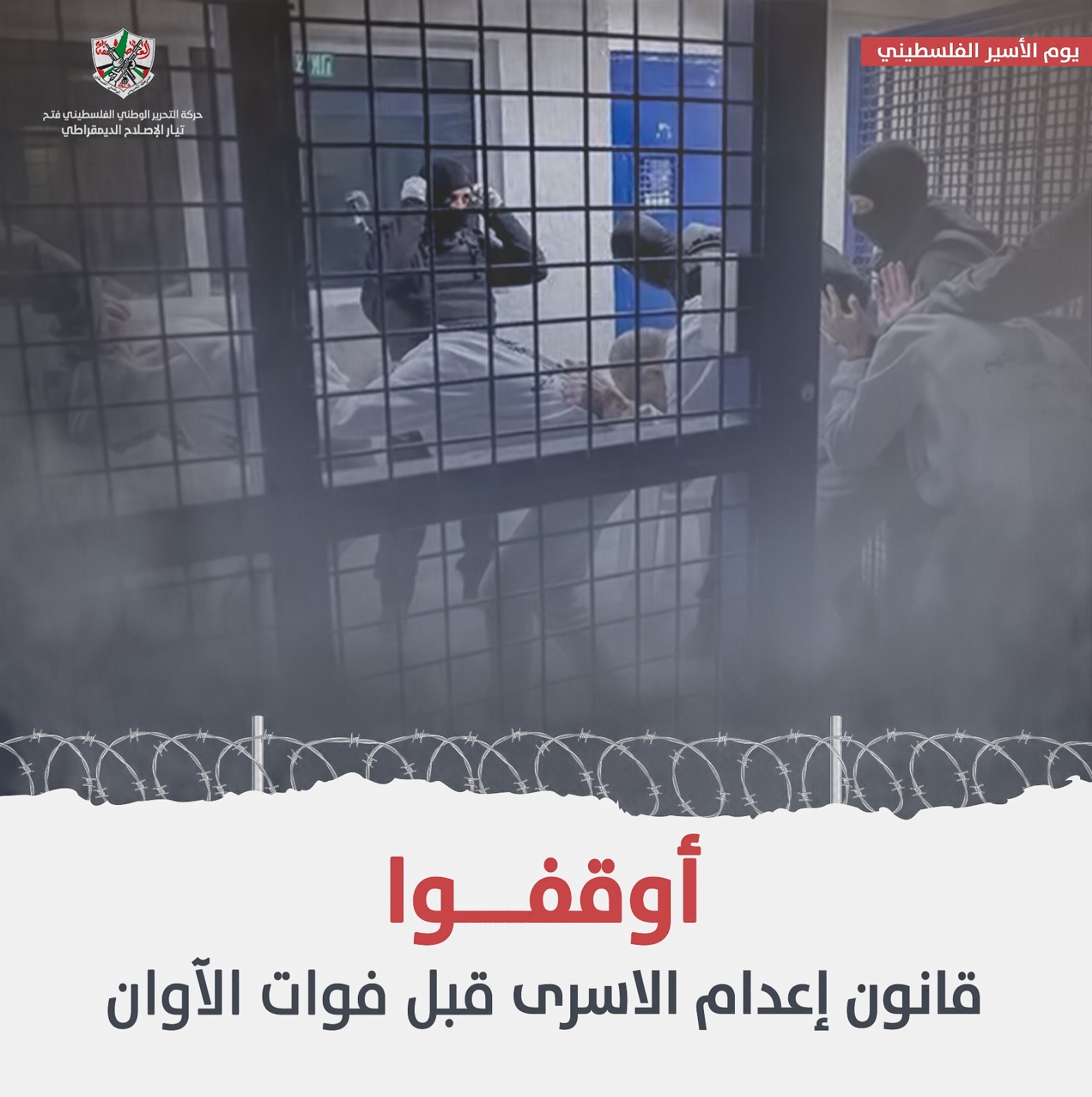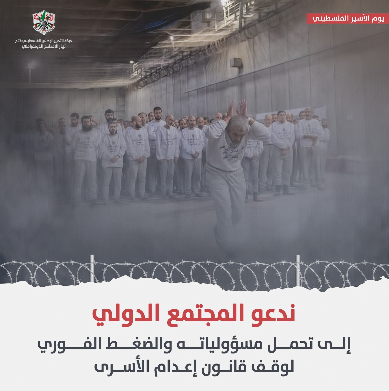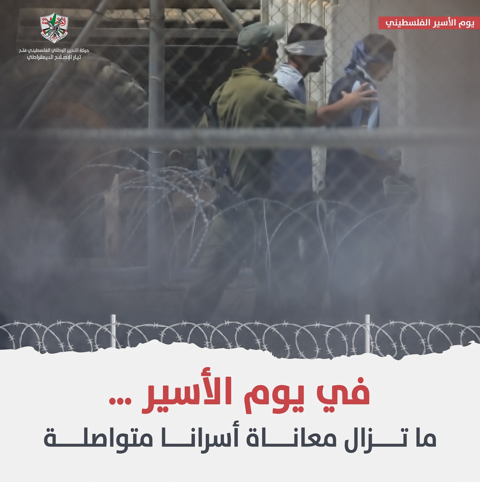 أطلق تيار الإصلاح الديمقراطي في حركة فتح حملة إلكترونية واسعة تزامنًا مع يوم الأسير الفلسطيني، بهدف تسليط الضوء على معاناة الأسرى داخل سجون الاحتلال، وتعزيز الحراك الداعم لنصرتهم ووضع قضيتهم في صدارة الاهتمام.